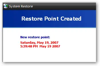 Once your restore point is created (which might take a few minutes), you will get a confirmation screen.