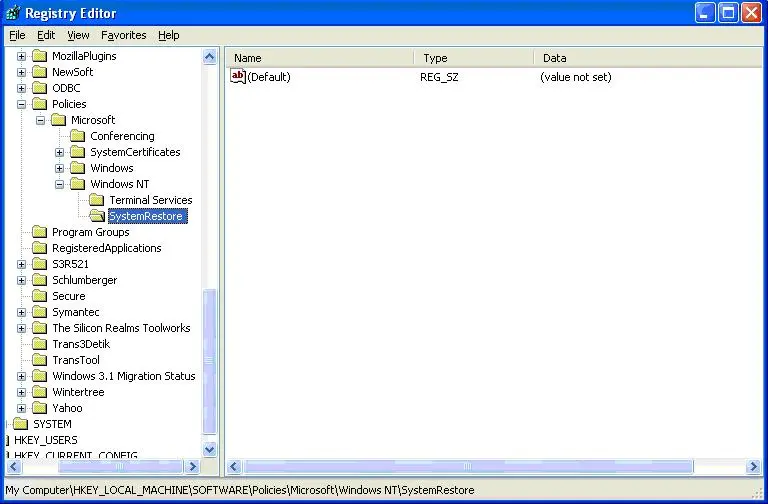 [HKEY_LOCAL_MACHINE\SOFTWARE\Policies\Microsoft\Windows NT\SystemRestore]
