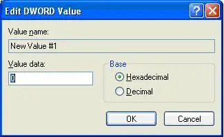 Double click the new key to open the DWORD Value dialog box, under value data, type 0 and then click OK